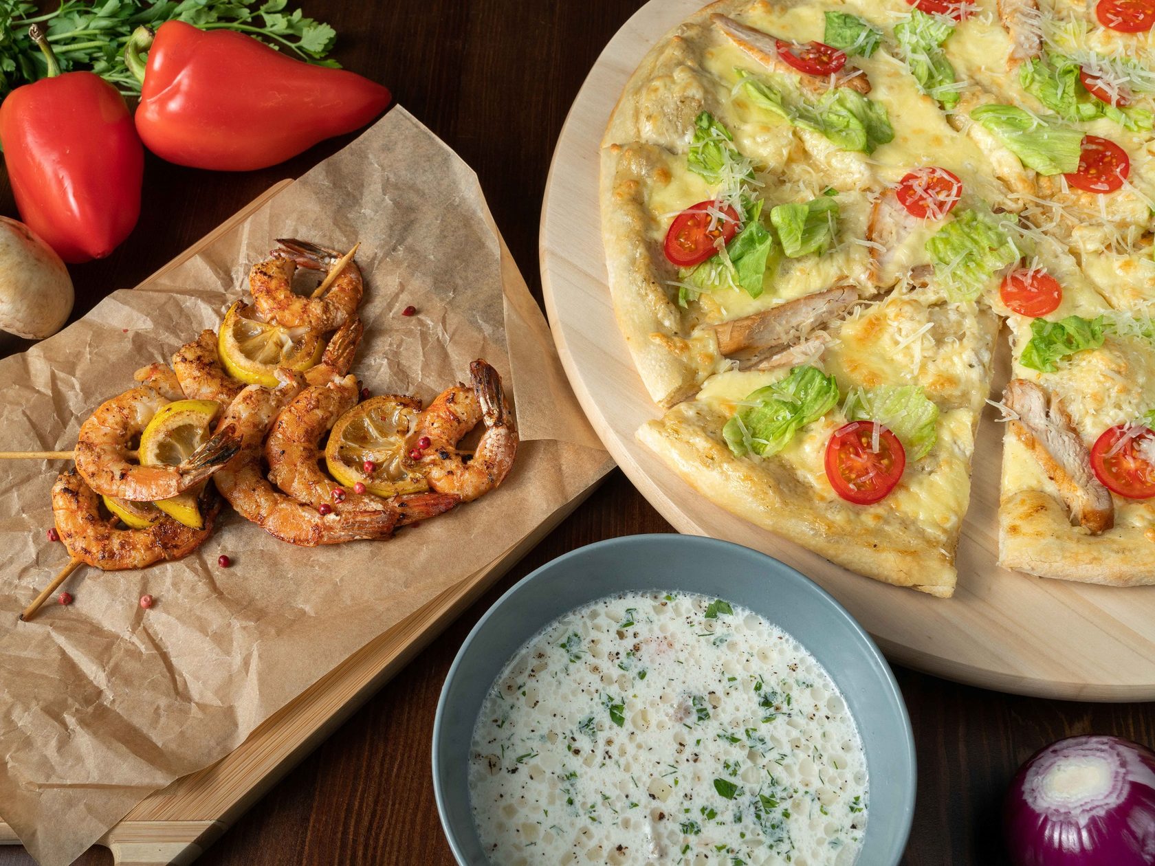 Стейки с мангала, хрустящая пицца из дровяной печи, бургеры и честные русские закуски.